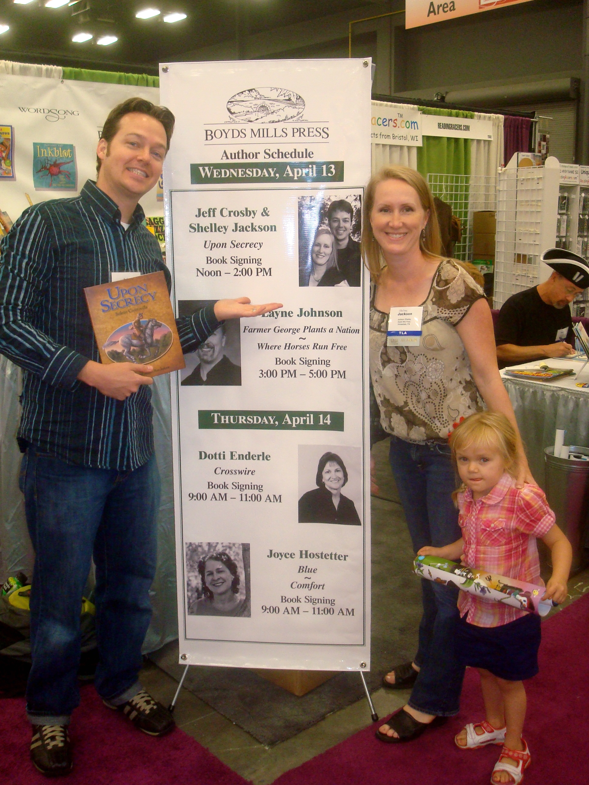 Just a few weeks earlier, I had been to the Texas Library Association annual conference. Since I failed to report on that in a timely manner, I decided I would just use my experience there to compare with the IRA. Both events are quite large. The Texas Library Association annual conference, held in Austin this year, is nearly as big as the national conferences, I’m told. Everything is big in Texas, including the power of the librarian! Despite it’s large size, the crowds weren’t huge. The Highlights crew, who invited Shelley and I to come sign copies of Upon Secrecy, said it was because of all of the school and municipal budget cutbacks. The IRA was a bit larger and more crowded. It was a national gathering. Once again, I was told attendance was diminished because of state budget deficits. Also, many attendees didn’t stick around after their lectures because of the seductive call of the nearby theme parks. Oh, Orlando!